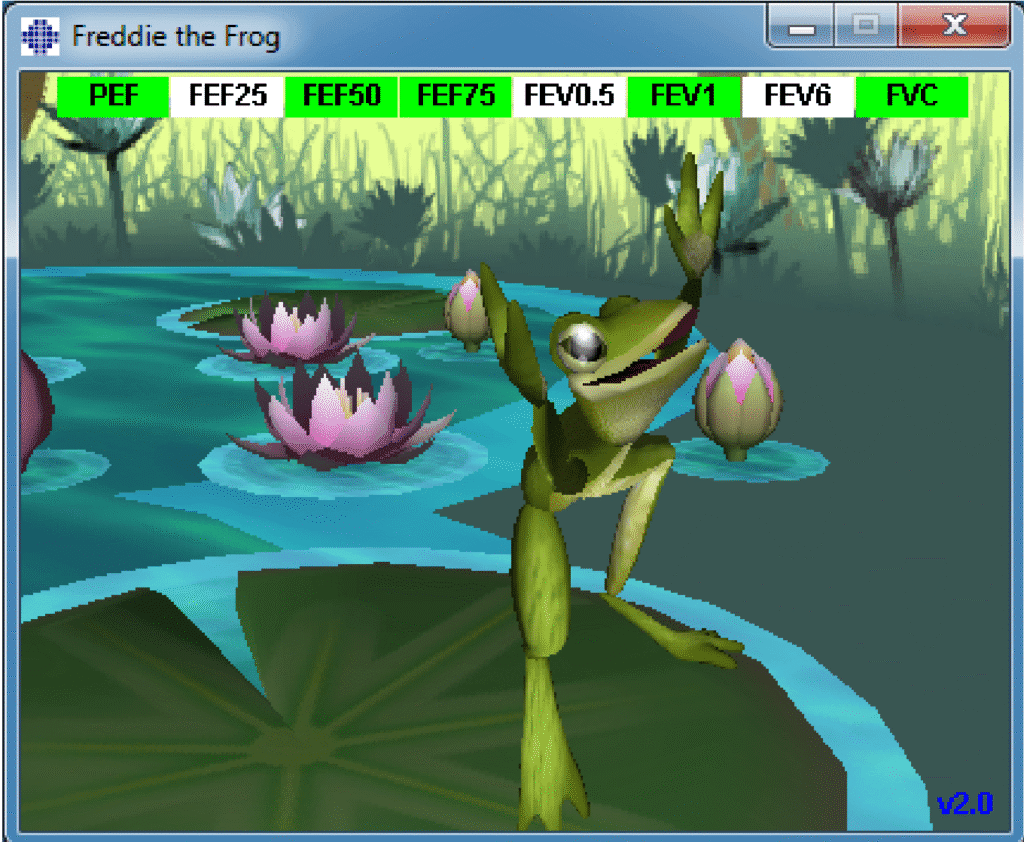 Freddie-sammakko tekee spirometriasta hauskempaa ja varmistaa tarkemmat sekä luotettavammat tulokset kannustamalla puhaltamaan tutkimuksen oikein.